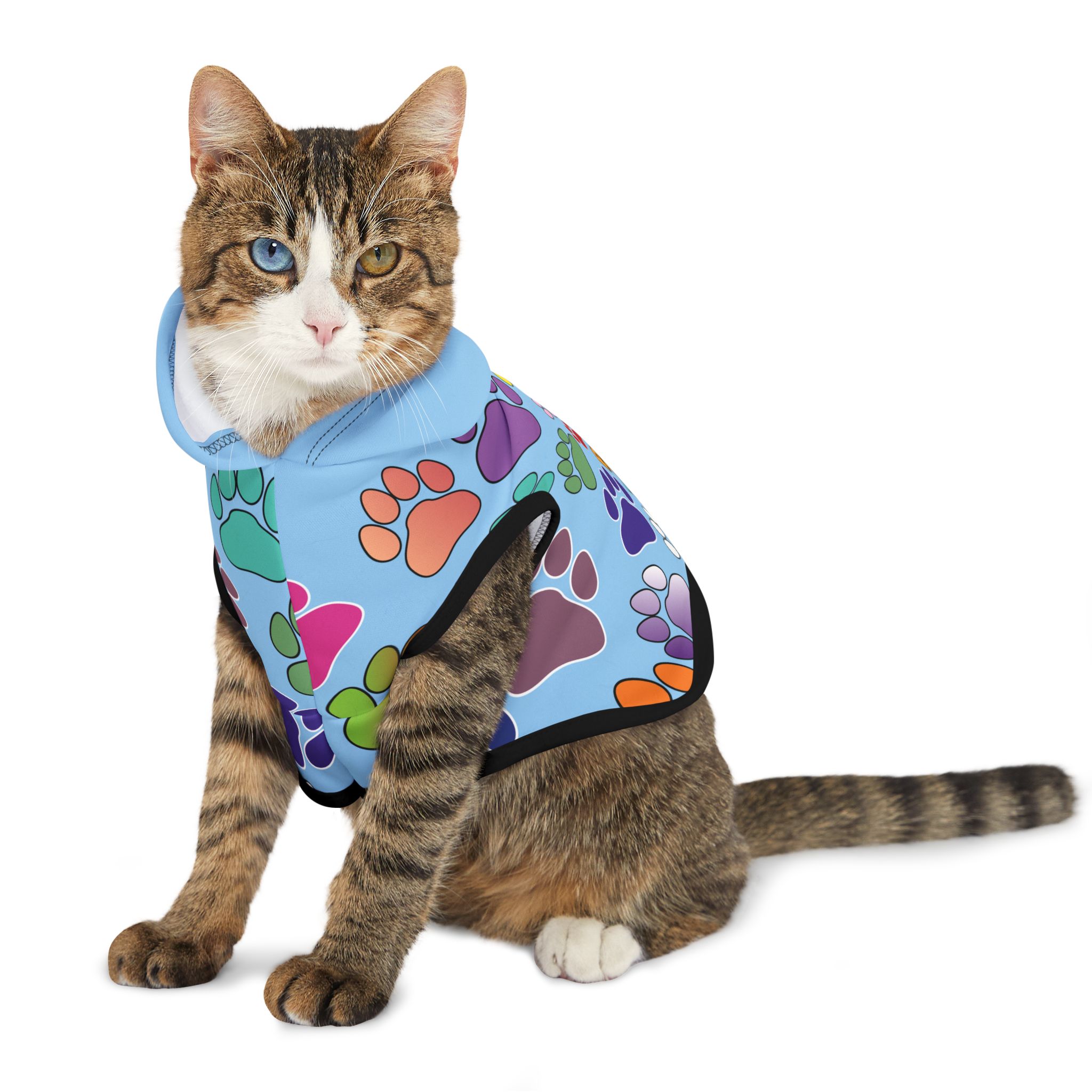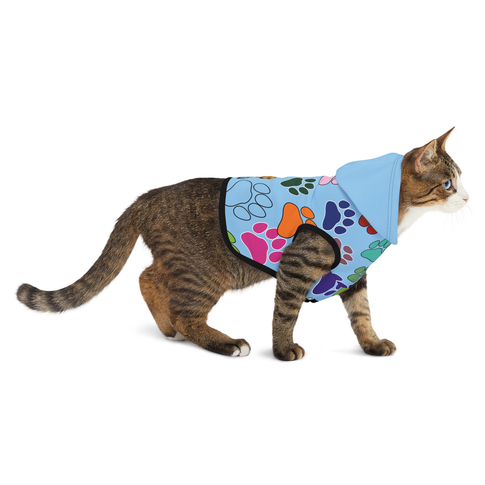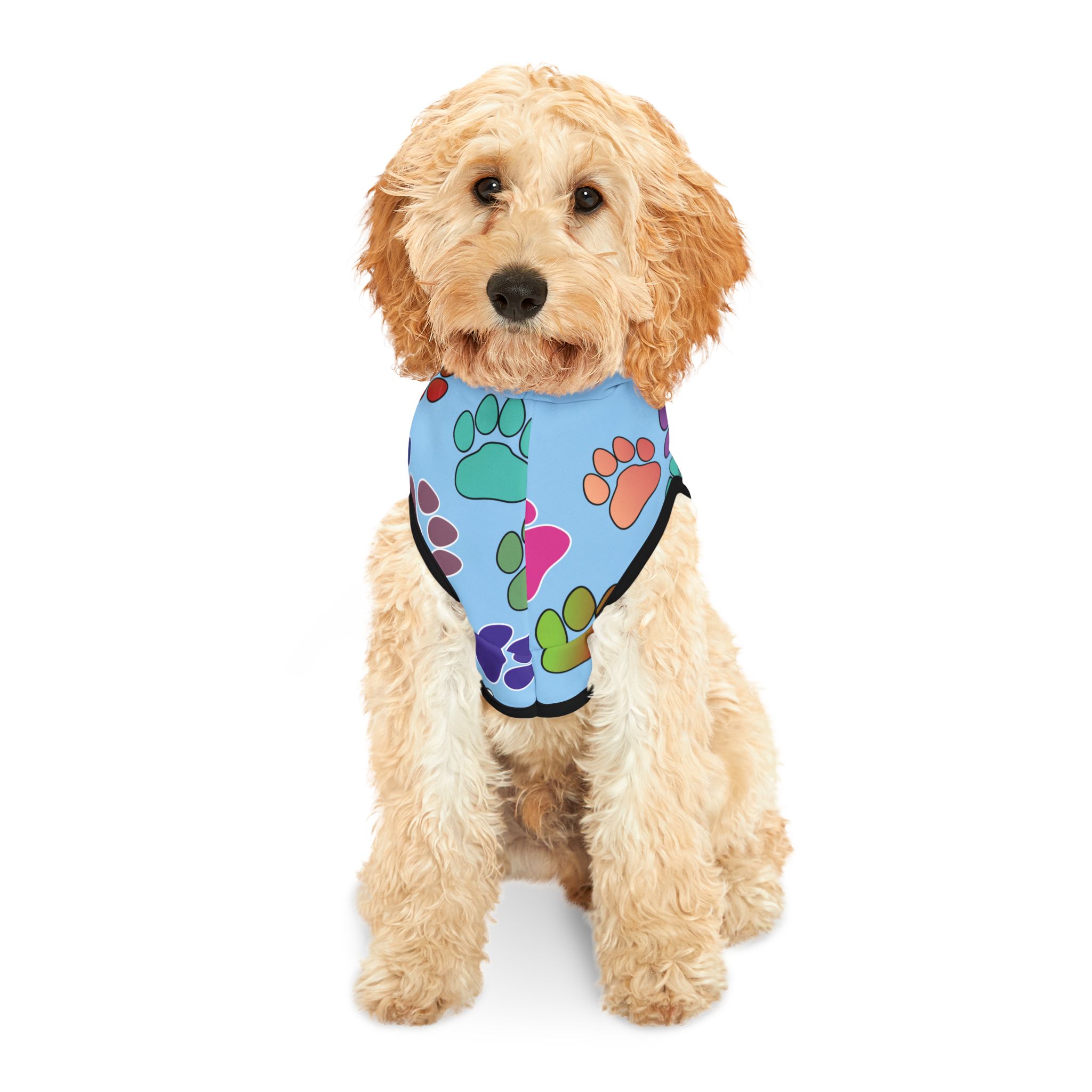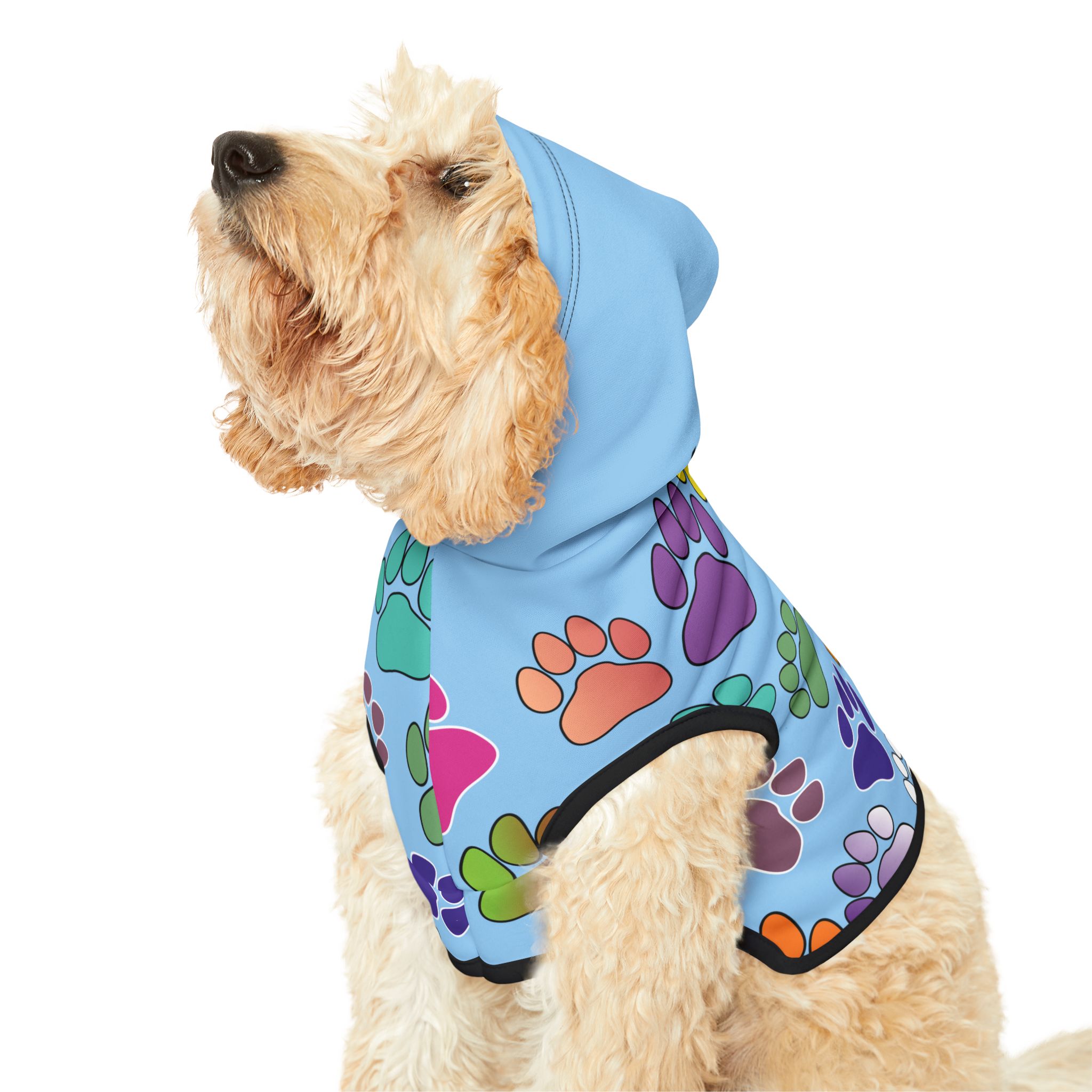 Introduce your furry friend to style and comfort with this adorable Pet Hoodie.  Crafted from soft, durable polyester, it ensures your pet feels cozy while showcasing their playful personality.  The vibrant design, featuring colorful paw prints, adds a cheerful vibe perfect for any occasion.  This hoodie is not just a clothing item; it’s a statement piece that celebrates the bond between you and your pet.  Ideal for pet owners who enjoy including their companions in everyday adventures, this hoodie is perfect for birthdays, family gatherings, or just a fun day out at the park.  Available in multiple sizes to fit your pet perfectly, it’s a must-have for every stylish pet parent!