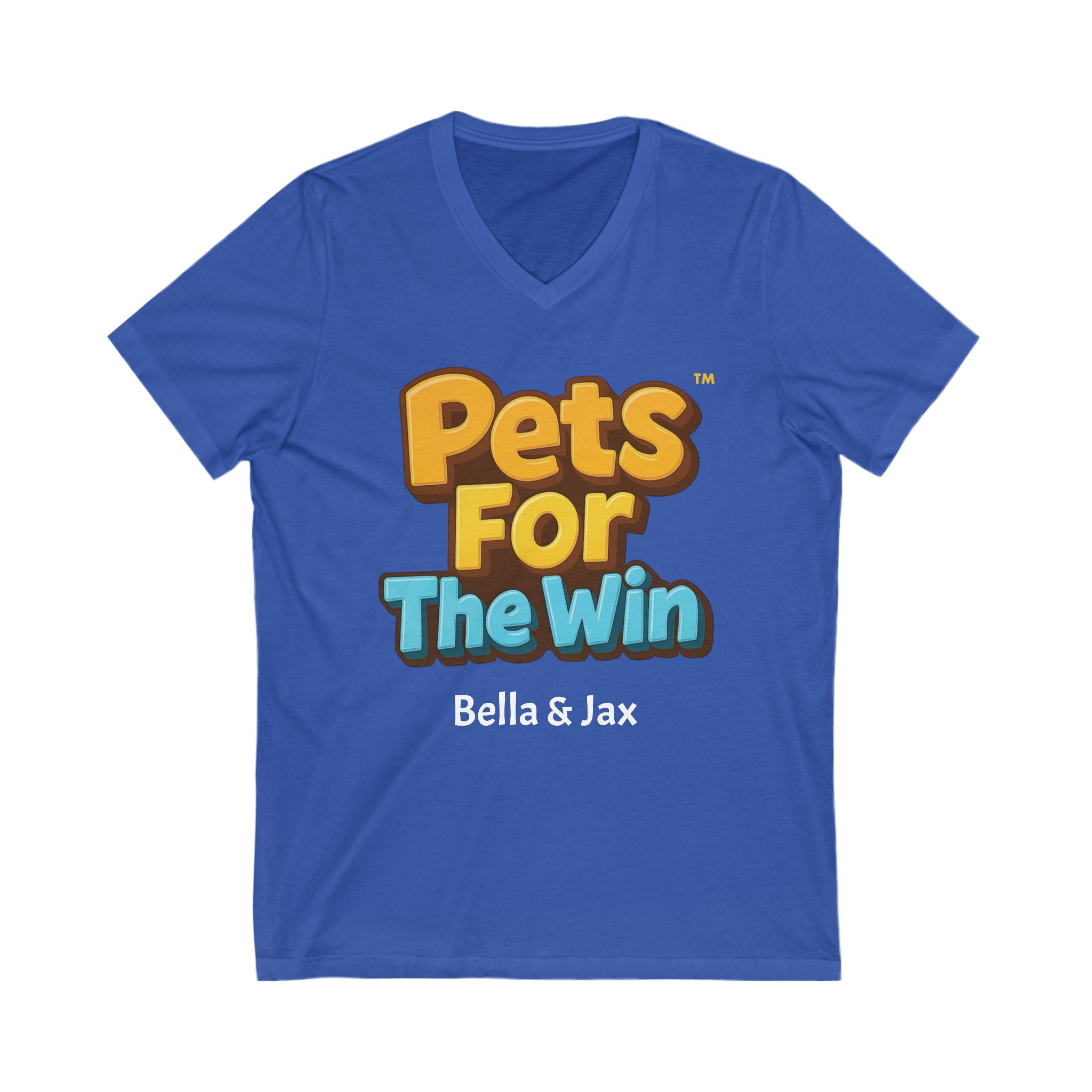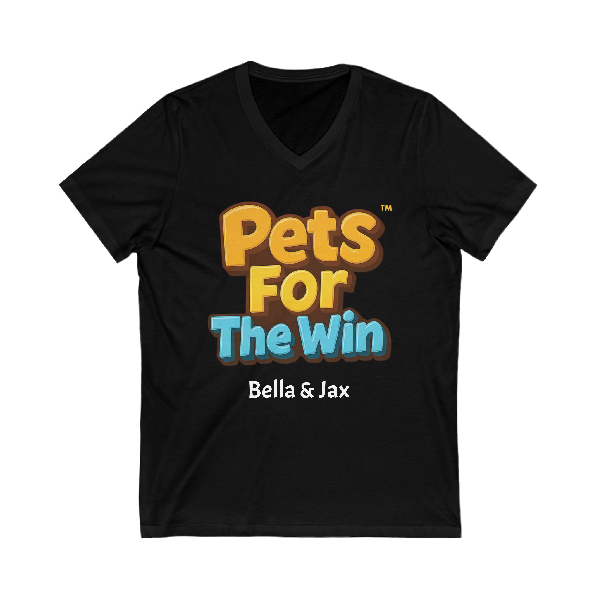 A custom v-neck t-shirt that allows you to add a pet name, perfect for casual or semi-formal settings. Ideal for adults looking for a comfortable and stylish silhouette.